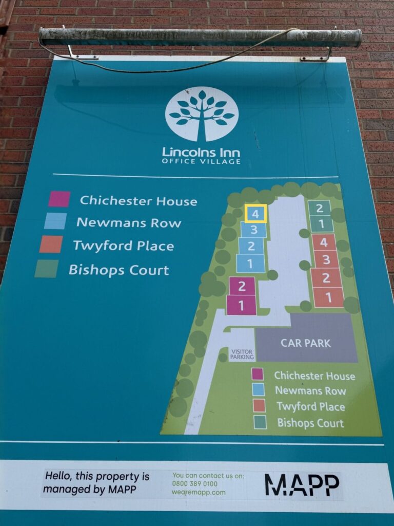 Come up Lincoln Road until you pass Squirrel Self Storage. On the right-hand side you will see the entrance for Lincoln Inn Office Village.
