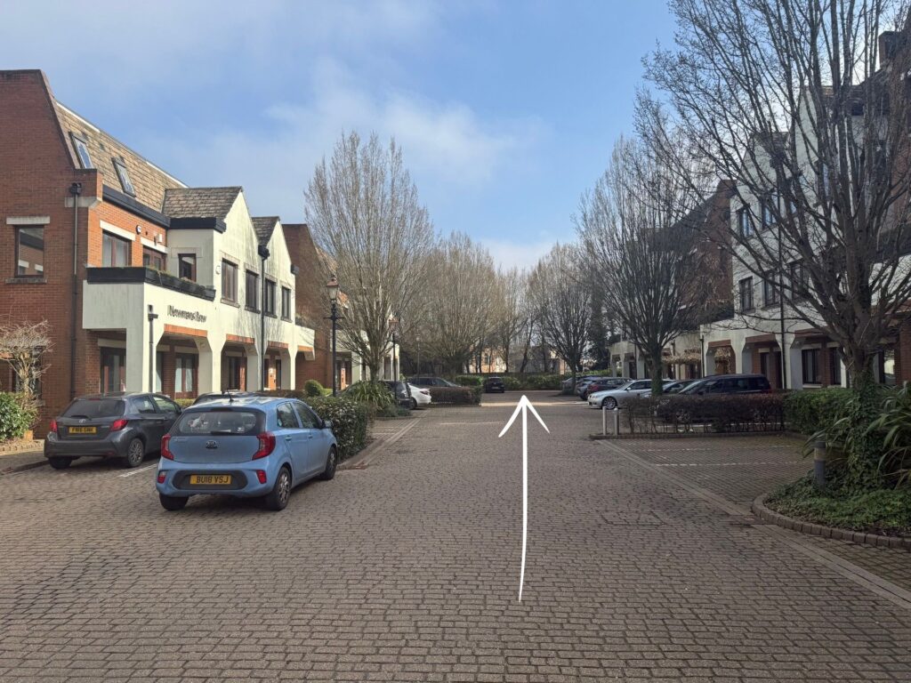 Please follow the arrow pointing to the end of the car park.